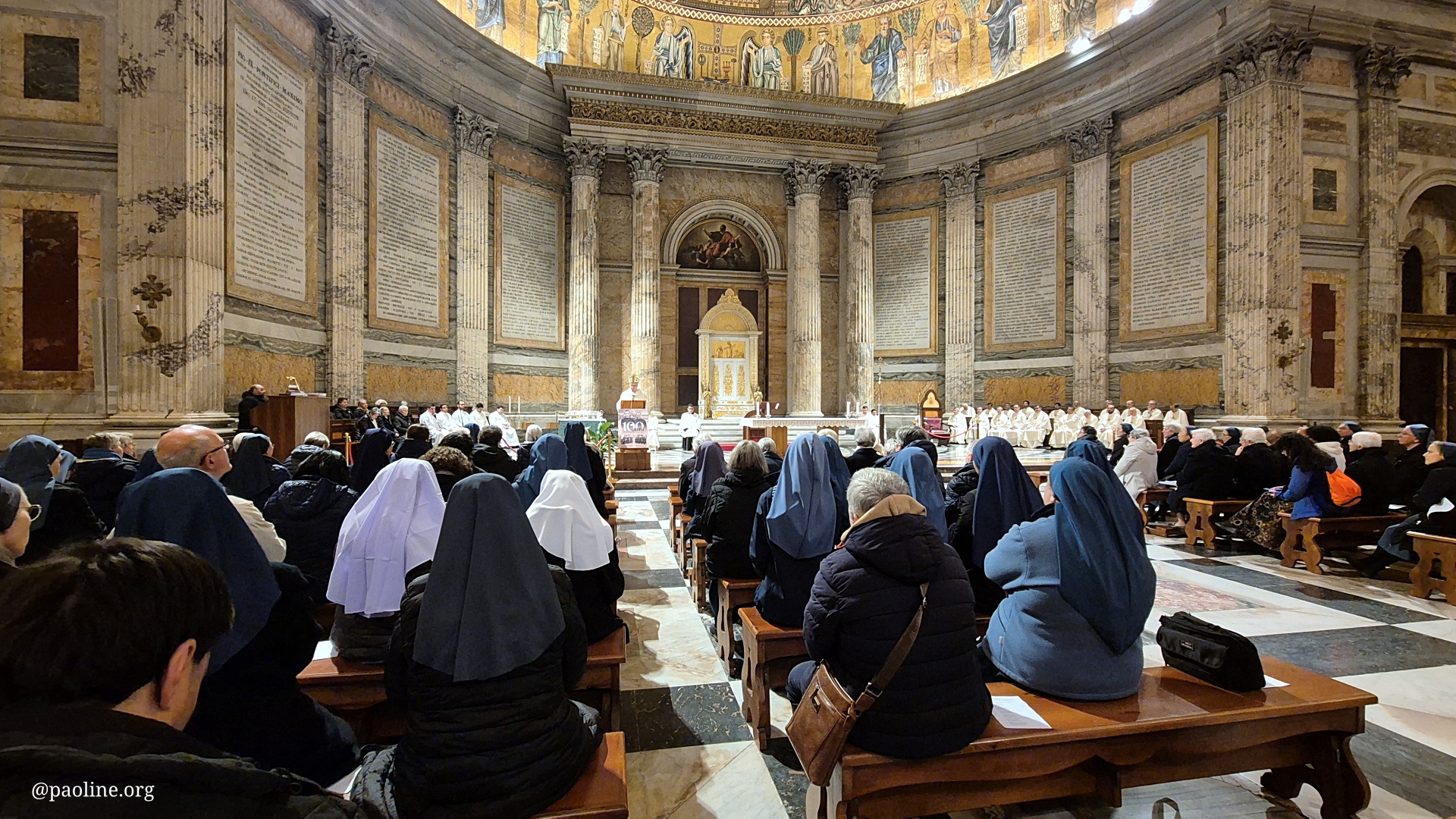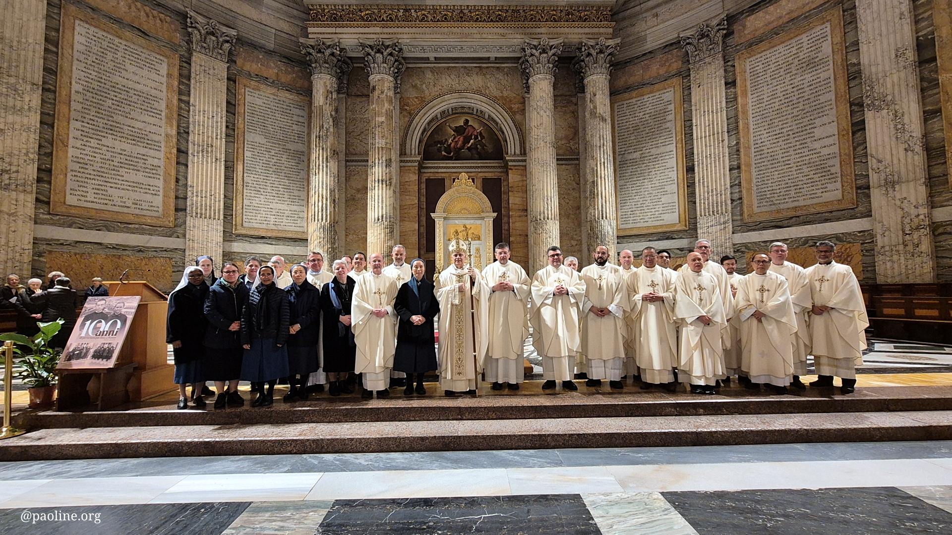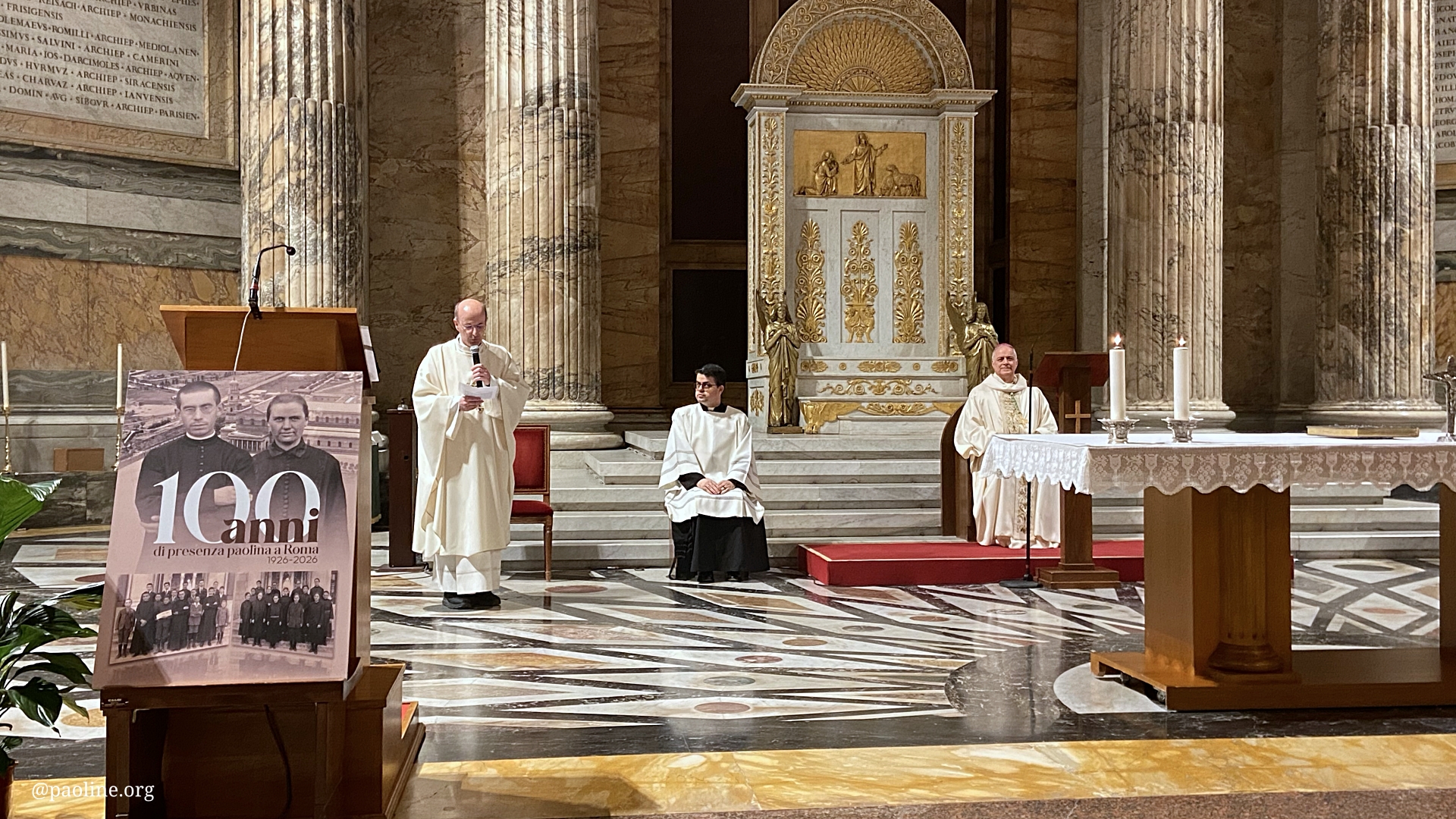 La commemorazione si è aperta il 15 gennaio nella Basilica di San Paolo fuori le Mura con una solenne concelebrazione eucaristica presieduta dall’abate Dom Donato Ogliari. Nell’omelia, partendo dal Vangelo della guarigione del lebbroso, l’abate ha invitato a rinnovare uno sguardo di fede audace e umile, che caratterizzò gli inizi della Famiglia Paolina a Roma, vissuti nella gioia e nella povertà evangelica.