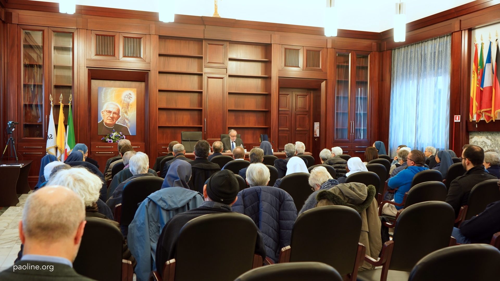 Il 17 gennaio, nell’auditorium della Società San Paolo, si è svolta una mattinata di approfondimento coordinata da sr Nadia Bonaldo, fsp. Il professor Andrea Riccardi ha illustrato il tema “Da Roma al mondo”, evidenziando come la presenza nella città del Papa abbia rafforzato la dimensione missionaria paolina. Sono seguiti contributi storici sull’arrivo e sui primi anni a Roma e sull’approvazione della Pia Società San Paolo, con la presentazione di recenti pubblicazioni archivistiche.