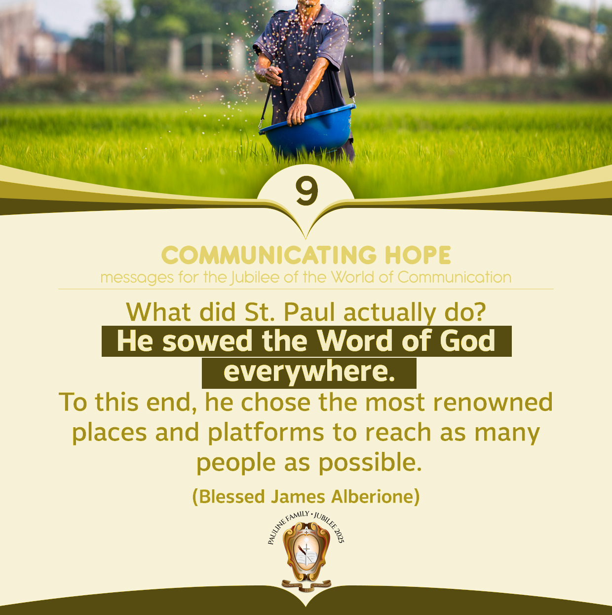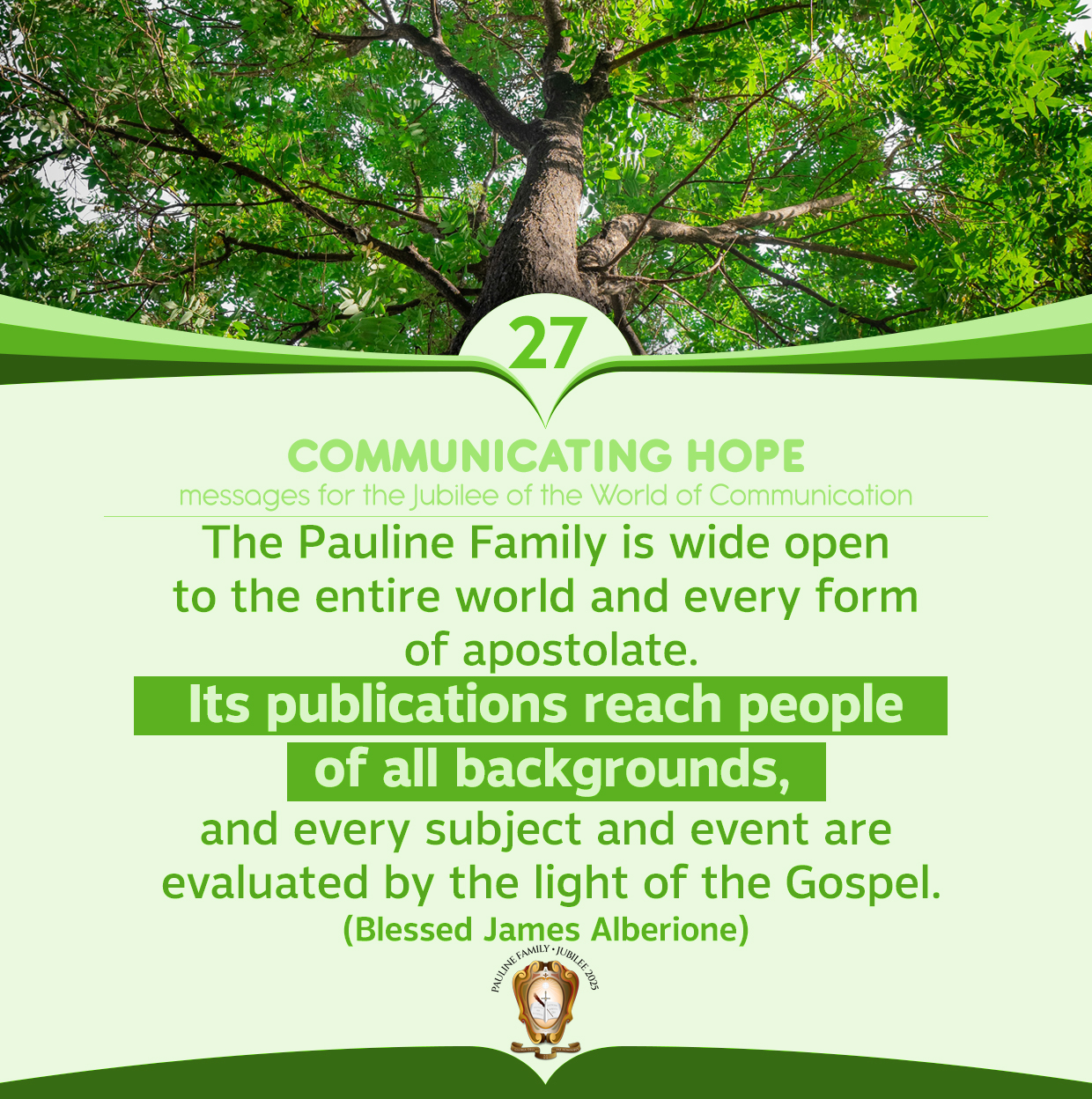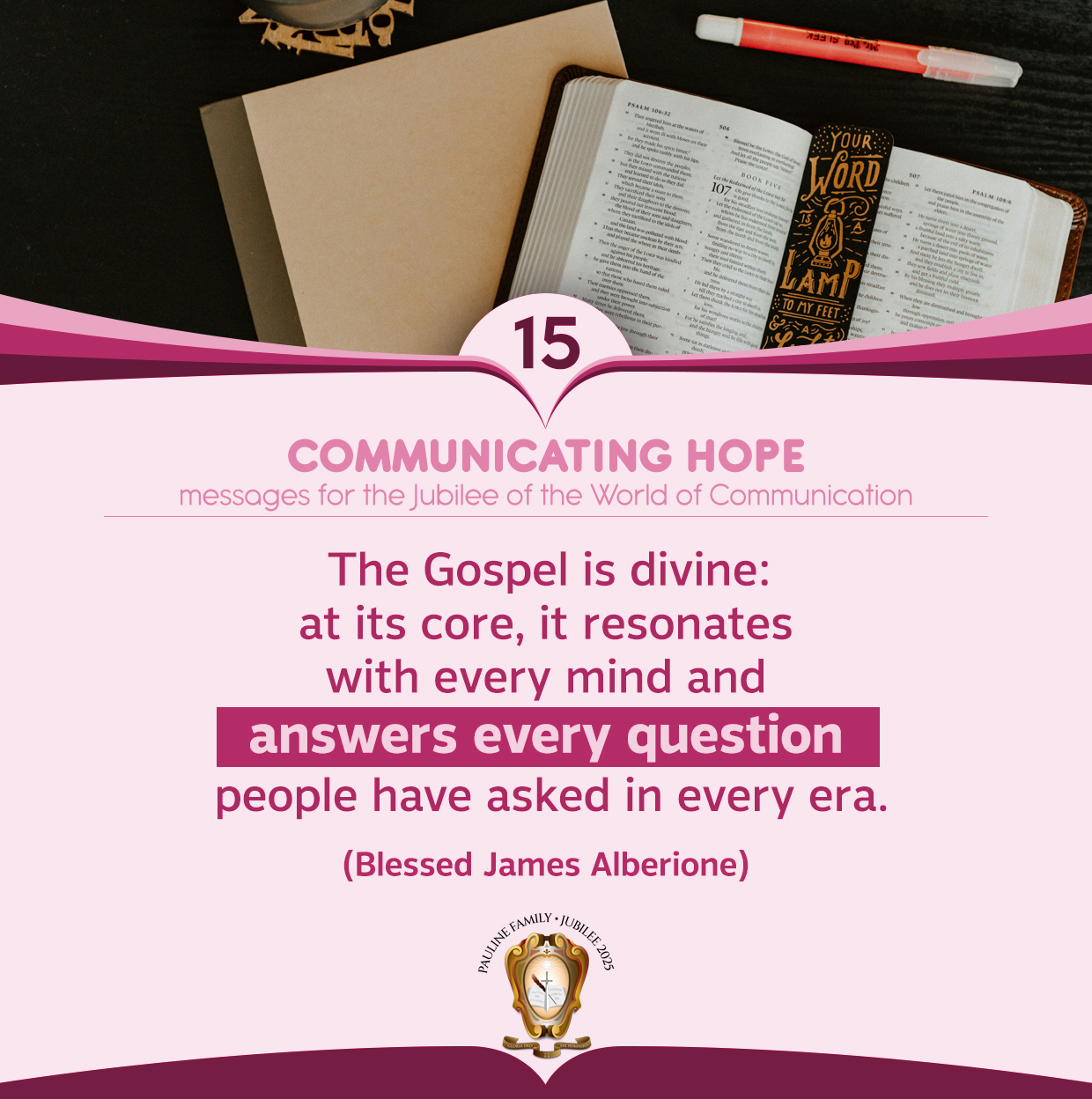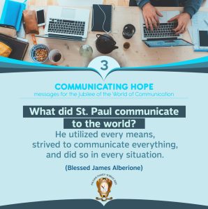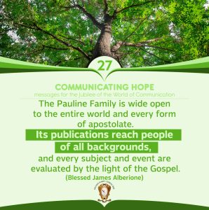 with phrases by Blessed Fr. James Alberione on the themes of communication and hope.