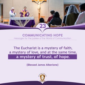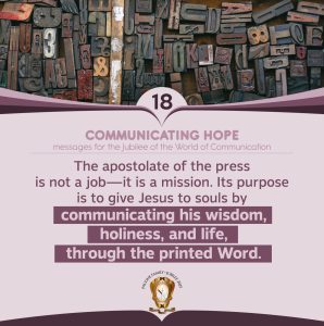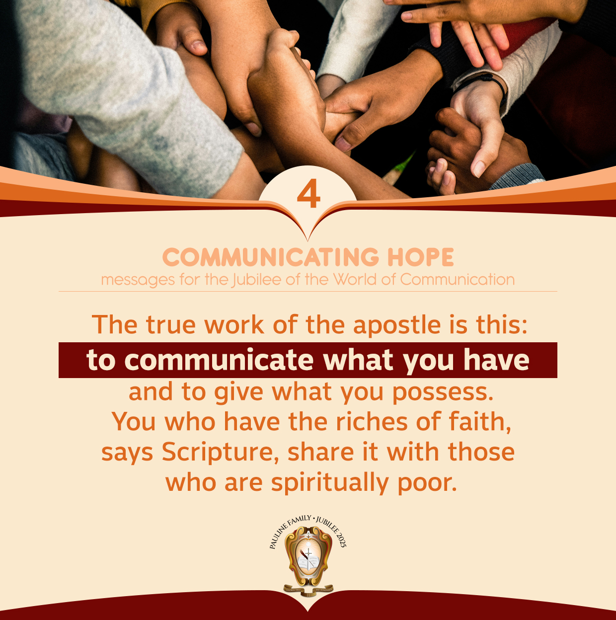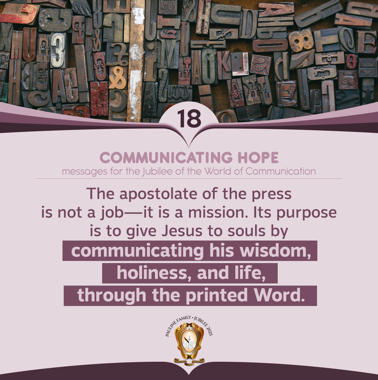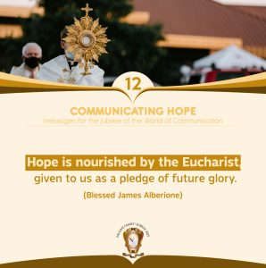 with phrases by Blessed Fr. James Alberione on the themes of communication and hope.